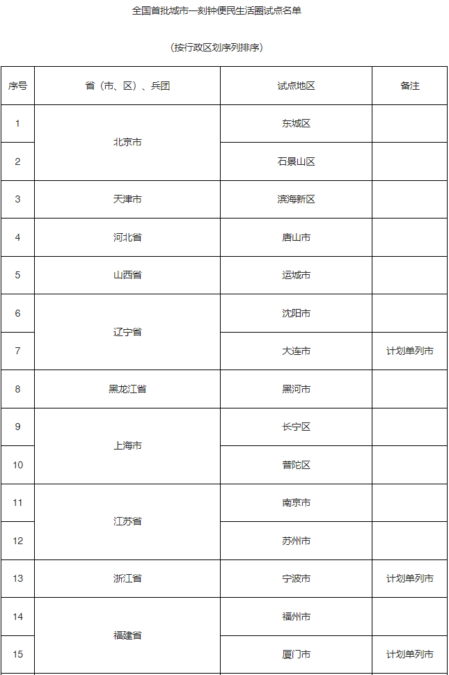 全国首批30家一刻钟便民生活圈试点地区名单确定
